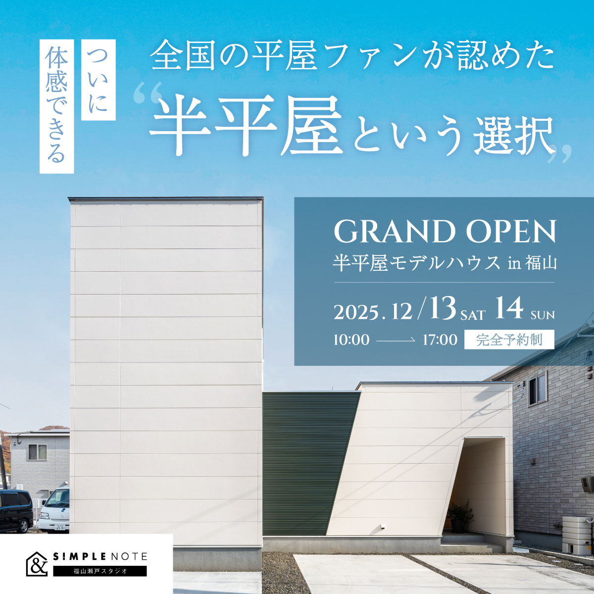 半平屋は、子育ての時期は2階を子ども部屋としてのびのび使え、巣立ったあとはご夫婦だけで1階で暮らせる住まいです。生活スタイルが変わっても大きな間取り変更をせずに暮らし方を切り替えられるため、無理のない日常が続きます。将来の負担を少なくしながら、今の心地よさも大切にできることが、この住まいの魅力です。変わっていく家族のかたちに寄り添い、長く“住みやすさ”が続く設計だと感じていただけましたら幸いです。