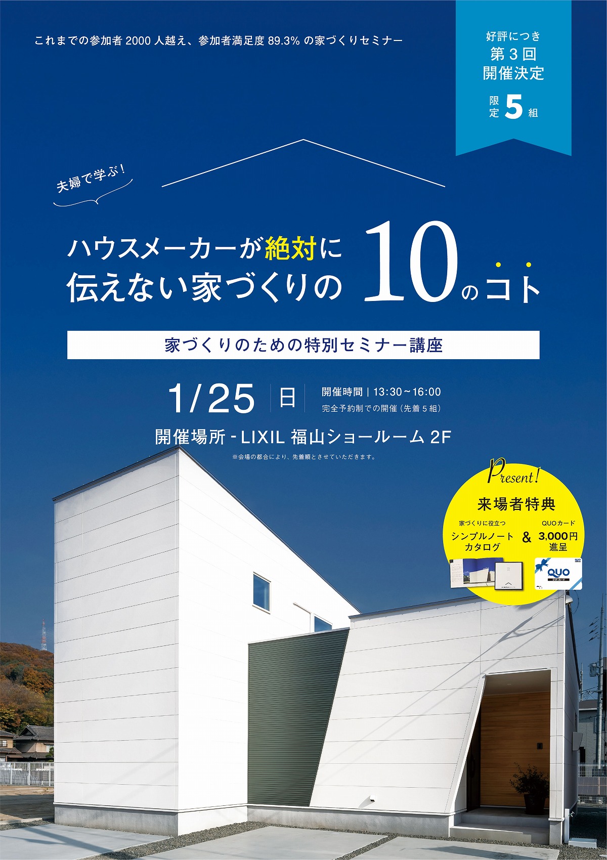 「ハウスメーカーが絶対に伝えない家づくり10のコトセミナー」